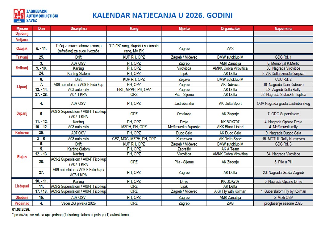 Na web stranici Zagrebačkog automobilističkog saveza objavljen je Sportski pravilnik te svi