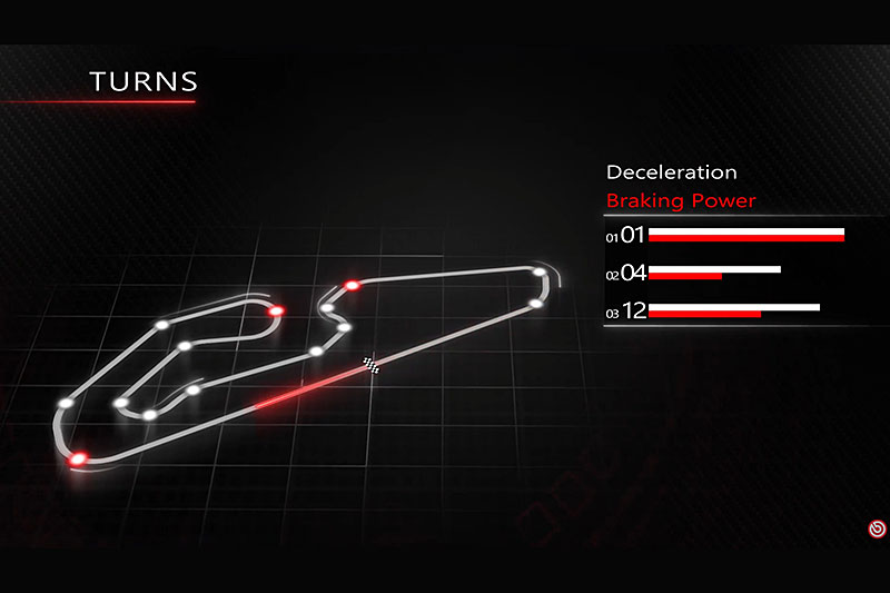 Najzahtjevniji zavoj na Goiânia – Ayrton Senna dolazi odmah na početku, gdje brzina opada s 337 km/h na 117 km/h. Ovo iznimno zahtijeva od vozača da koče punom snagom tijekom 4,4 sekunde, prelazeći pritom 259 metara. Tijekom tog vremena, vozači primjenjuju silu od 5,6 kg na ručicu kočnice, a kočenje rezultira usporavanjem do 1,5 g. U ovom trenutku, tlak u kočionom sustavu doseže impresivnih 12 bara, što dodatno naglašava izazov s kojim se vozači susreću.